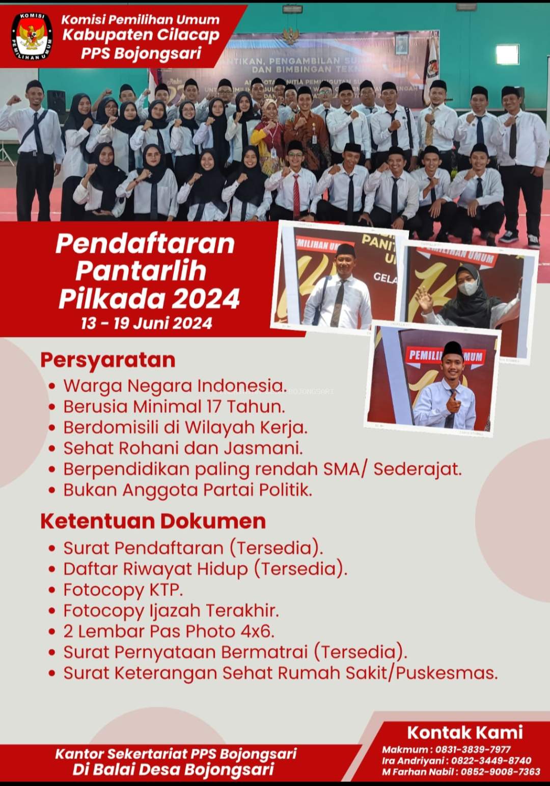 1. Datang ke Sekretariat PPS Desa Bojongsari/Hubungi Nomor yang tertera dibawah.